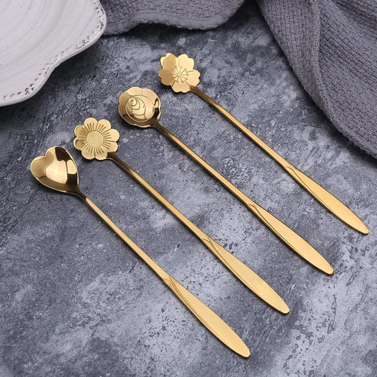 6pcs Gold Flower Stainless Steel Spoons